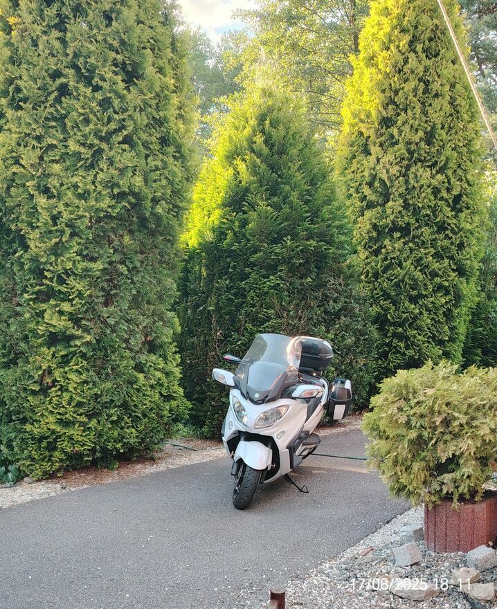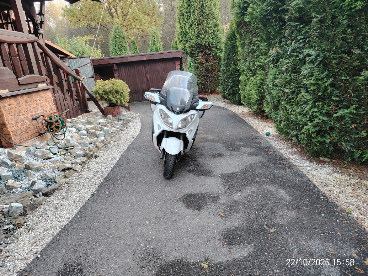 Sprzedam Burgmana 650 executiv z 2017 stan perfekcyjny pod wzgl. techn. I wizualnym. W kwietniu 2025 wymieniony olej silnikowy, filtr olejowy, olej silnikowy w przekładni, olej przekladniowy w przekładni główniej, filtr powietrza, płyn chłodniczy, hamulcowy, klocki b. dobre, opony gr. bieżnika 4.5mm,sruba skrzyni cvt stan doskonały. Od wymiany oleju przejechane ok 1800km.Przebieg b.niski 27900 km. Skuter b. bogato wyposażony, elektr. lusterka, szyba, podgrzewane 3 stop.manetki, kanapa, 3 tryby pracy skrzyni biegow, 3 oryginalne kufry Givi. Skuter bezwypadkowy, sprzedaje z powodu wieku 70 lat, jest już dla mnie za ciężki i za duży. Cena 26500 do negocjacji.Powiadom o podobnych ogłoszeniach